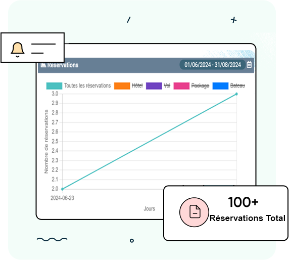 Avec BOOKASFAR, suivez et gérez vos réservations d'hôtels, de vols, et de packages touristiques en temps réel. Bénéficiez d'une gestion centralisée et simplifiée pour maximiser l'efficacité de votre agence de voyage et offrir une expérience fluide à vos clients.